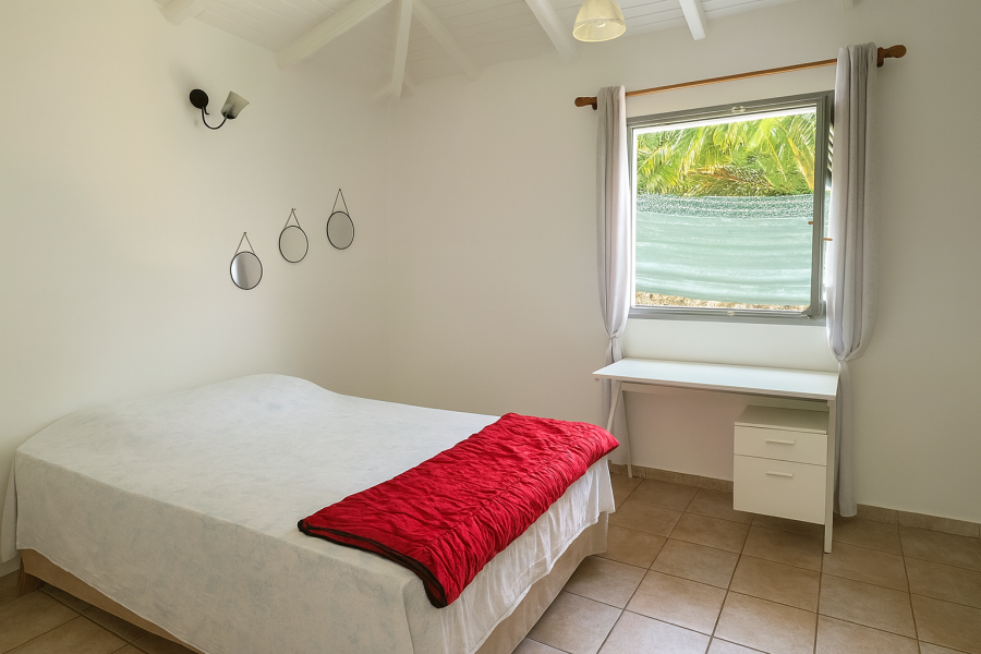 Elle se compose d’un séjour, d’une cuisine moderne, de deux chambres climatisées, d’une salle d’eau en commun avec WC ainsi que d’une chambre principale avec salle d’eau attenante et WC.