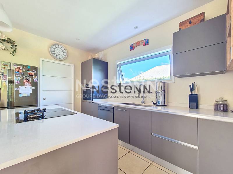 A vendre à Petit-Bourg une villa de 3 chambres située dans un lotissement privé au coeur d'un quartier résidentiel recherché. Cette maison d'architecte moderne et lumineuse offre une superficie de 102 m² sur un terrain soigneusement aménagé. Cette maison se compose d'un espace de vie convivial comprenant un séjour spacieux ouvert sur une cuisine contemporaine équipée et son cellier attenant. Un grand couloir lumineux dessert deux chambres confortables, chacune avec sa salle d'eau privative. La suite parentale séduit par sa chambre élégante, sa salle d'eau avec double vasque et son dressing. Toutes les pièces principales s'ouvrent sur une vaste terrasse bordant la piscine, parfaite pour profiter pleinement du climat tropical et des moments de détente en famille ou entre amis. Au fond du jardin , un cabanon pouvant servir de bureau. Le prix de vente est de 585 000 euros HAI, les Honoraires d'agence sont à la charge du vendeur. DPEG : A Contactez nous pour plus d'informations ou réserver votre visite , à l'agence NESTENN Jarry au [coordonnées réservées] ou Sophie au [coordonnées réservées]. Sophie DRAGIN (EI) Agent Commercial - Numéro RSAC : 382030849 - Pointe à Pitre.