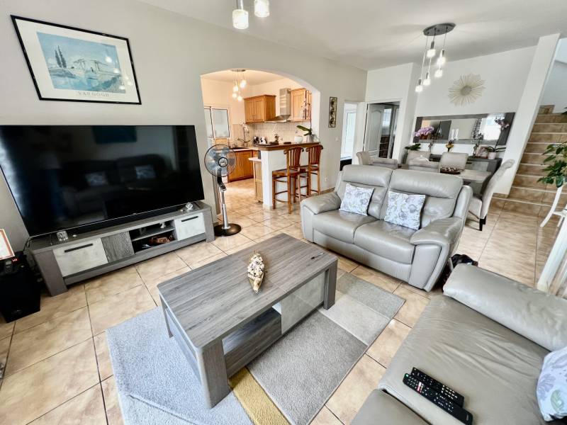 SAINT PIERRE 97410 - N'ATTENDEZ PLUS... Venez visiter cette charmante villa F4 d'environ 121 m2 habitables - à étage - très bien entretenue, spacieuse et lumineuse, implantée sur environ 410 m2 de terrain clôturé. Située dans un secteur recherché et facile d'accès, la villa bénéficie côté jour d'une vaste pièce à vivre avec cuisine aménagée ouverte sur la varangue. Le coin nuit se compose de 3 chambres confortables allant de 12 à 17,50 m2 - d'une salle de bains agréable et d'une salle d'eau lumineuse. Pour plus de fonctionnalité, vous disposez d'une cuisine extérieure et d'un double garage d'environ 31,70 m2. Proche de toutes commodités. Tout à l'égout. Cette villa en bon état général a plus d'un atout pour vous plaire..