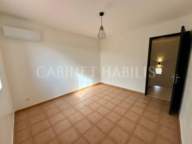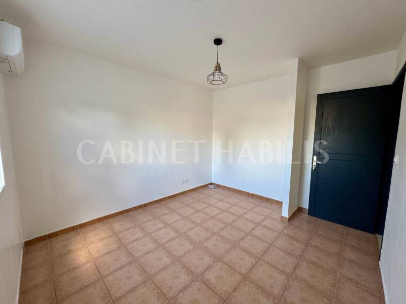 À l’étage, la maison se compose de deux chambres climatisées, d’une pièce supplémentaire pouvant servir de dressing ou d’espace de rangement, d’une salle de bains et d’un second WC séparé.