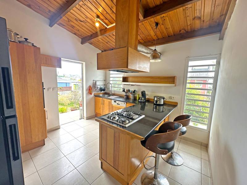 LaKaz Société Immobilière vous propose en location meublée cette villa 4 pièces de 100m2 habitables en RDC + R1, située dans un secteur calme au Tampon
