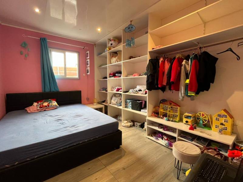 Terrasse de 35 m2 environ, buanderie, possibilité de créer une 4eme chambre ou agrandir la pièce de vie.