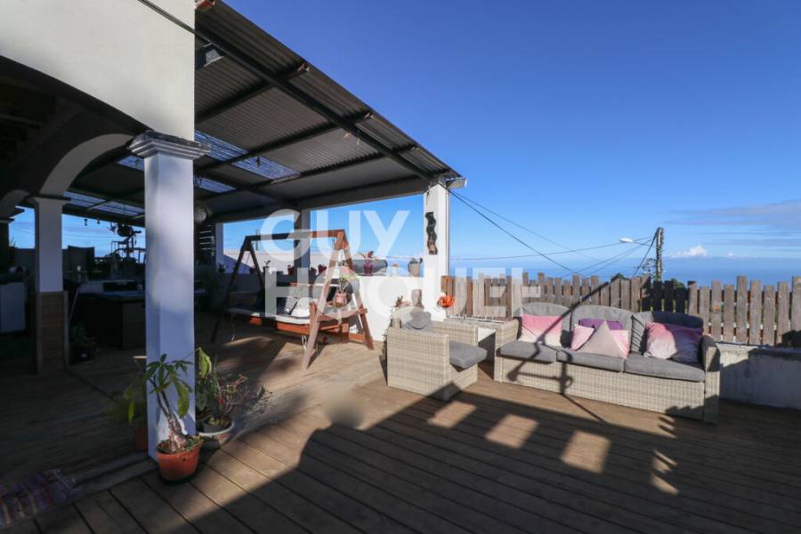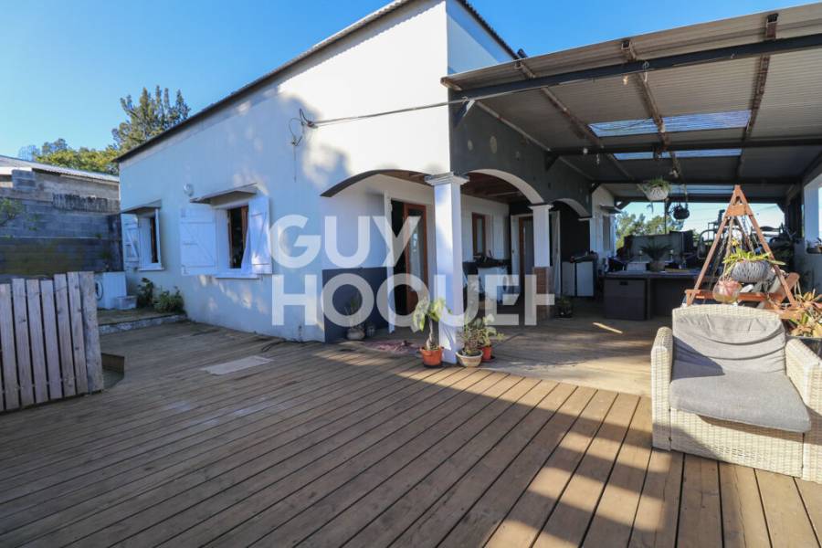 TAN ROUGE - SAINT PAUL Sur une parcelle d'environ 281m2, maison T5/6 d'environ 126m2 à rafraîchir composée d'un séjour, une cuisine semi-équipée, 5 chambres, 2 salles de bains, 2 WC, une mezzanine. Possibilité d'aménager un studio sur la parcelle, les fondations sont déjà existantes. Grande varangue 2 places de parking Altitude : 800m