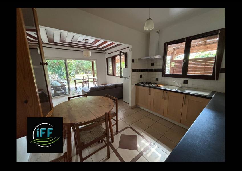 Exclusivité IFF : Villa F4 type Bourbon bois (2010), en excellent état, actuellement aménagée en 2 logements T2 et T3. Auparavant respectivement loué 850 et 980 euros.