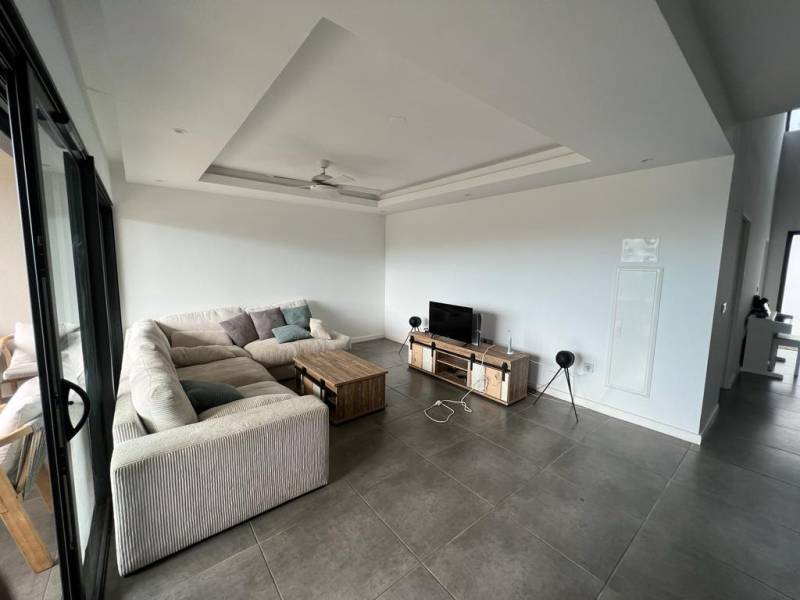 Lakaz Société immobilière vous propose cette magnique maison non meublée moderne de 5 Pièces diposant de 4 Chambres dont une belle suite parentale avec une baignoire et une douche à l'italienne et 3 chambres sur le R+1, une cuisine semi-équipée, 2 WC séparés, un salon spacieux, un hall d'entrée proposant une grande hauteur sous plafond, une terrasse ensoleillé et une piscine.